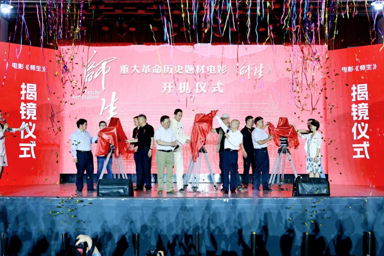 仪式现场,任晓山和杨胜群先后发表讲话,对电影《师生》的拍摄表示肯定,并就如何拍好这部影片提出了要求与希望。出品人薛松、李胜分享了创作初心,导演携主创团队上台亮相并发表了感言。最后,大家一起为电影开机揭镜。