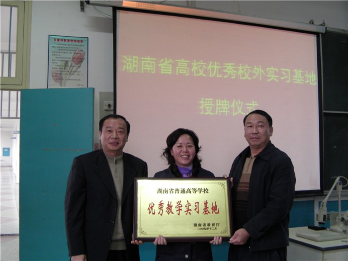 长沙市开福区教育局组织人事科肖先明科长、新竹小学陈利球校长、钟巧副校长、我院驻新竹小学实习带队教师肖弋副教授和实习队全体师范生参加了授牌仪式。在授牌仪式上,刘志敏副院长和肖先明科长发表讲话。肖先明科长在讲话中对我院多年来为开福区的基础教育事业培养了大量优秀的教师和管理人员表达了衷心的谢意,并表示开福区教育局将一如既往地重视和支持我院的教育实习工作,也希望能与我院进一步加强交流与合作,在开福区建设更多的优秀教学基地,共同为基础教育事业服务。刘志敏副院长在讲话中也表达了对开福区教育局、新竹小学的感谢,并指出教育实习是教师成长的重要实践教学环节,而优秀实习教学基地是教育实习工作顺利开展的重要保障,学院将进一步加强教育实习基地的建设和管理工作,并鼓励实习学生充分利用实习基地良好的教育教学资源,强化教师技能的训练,练就本领,服务社会。