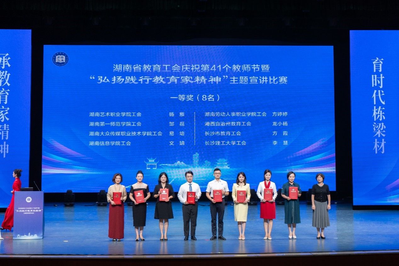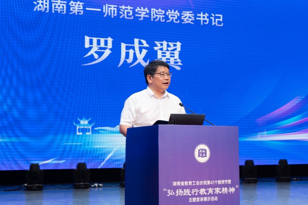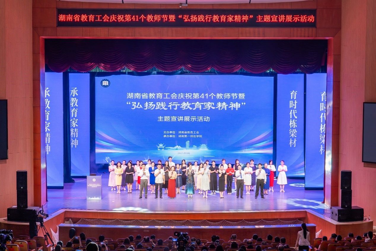 在浩瀚师恩中聆听教育家精神的时代回响!9月5日上午,由湖南省教育工会主办的庆祝第41个教师节暨“弘扬践行教育家精神”主题宣讲展示活动在best365官网举行。