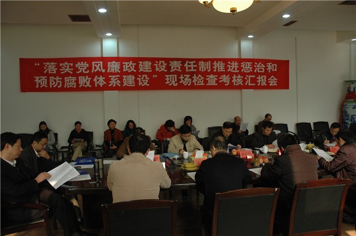 12月1日上午,省“落实党风廉政建设责任制,推进惩治和预防腐败体系建设”检查考核组在湖南中医药大学纪委书记秦裕辉的带领下,一行四人来我院检查指导工作。院领导詹小平、彭小奇、刘鸿翔、李学全、刘志敏、李克勤、阳柏苏、刘宇以及相关部门负责人出席了汇报会。汇报会由院长彭小奇主持,院党委书记詹小平代表院党委、纪委汇报了我院“落实党风廉政建设责任制,推进惩治和预防腐败体系建设”的基本情况。