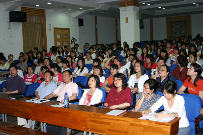 余宪校长1980年毕业于湖南第一师范,30年来一直耕耘在小学教育教学园地中,取得了丰硕的成果。作为湖南一师校友的杰出代表,余校长对一师学子们寄予了深情的关注和殷切的期望。她在报告中结合自己的经历和体验,深入浅出地阐明了教师应从职业目的、知识结构、专业技能、教育智慧四个方面努力使自己成为“最博学和最优秀的人”,同时针对小教大专部2006级实习工作,重点讲述了实习工作中实习生和指导教师需注意的事项,并勉励指导老师要秉着“一份责任,一种服务”的宗旨,尽心尽力做好实习指导工作。