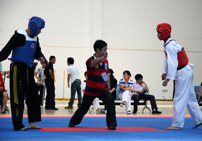 为了提高广大业余跆拳道爱好者技术水平,增进高校间的相互交流,全面推广跆拳道运动,5月1日—2日,我院体育系联合湖南人文科技学院、湖南城市学院、衡阳师范学院、湖南文理学院、吉首大学、湖南科技学院、怀化学院、广东湛江师范学院等十大高校举办了2010年湖南省高校跆拳道邀请赛暨中国国家跆拳道示范团选拔赛,我院健儿荣获竞技实战六个第一,品势一个第一。