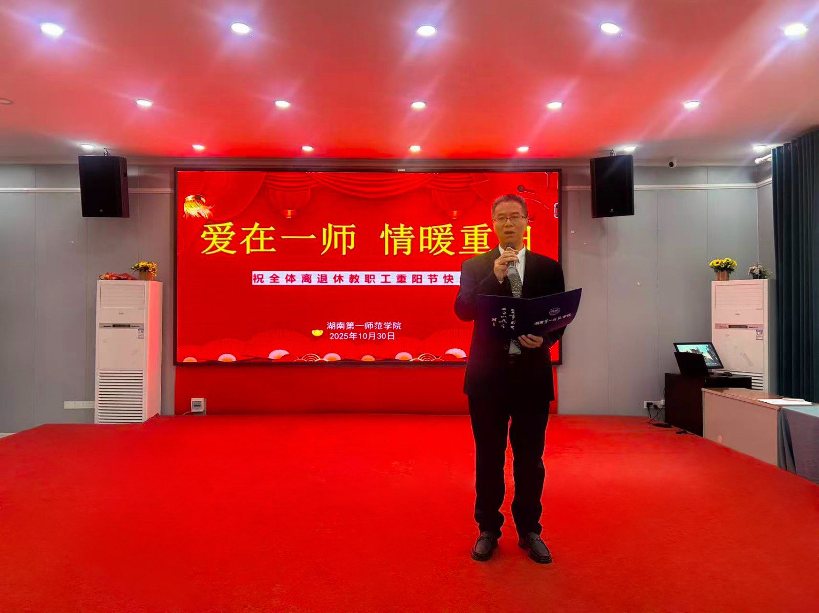 活动现场,喻祖国代表校党委向全体老同志致以节日问候和美好祝愿并讲话。在讲话中,他深情回顾了学校建设发展的奋斗历程,向老同志们通报了近年来学校在各领域取得的突破性成果。他强调,这些成绩的取得,凝聚着一代代一师人的心血与智慧。老同志们用青春和汗水浇铸了学校今日发展的坚实根基,是学校不断前行的坚强后盾。他表示,学校将始终牢记老同志的历史功绩,把尊老敬老作为重要责任,常怀敬老之心、善谋为老之策、多做助老之事,持续认真贯彻落实党和国家关于离退休工作的各项方针政策,在政治待遇上强化保障、在生活上细致照顾、在精神上深化关怀,让老同志们切实感受到组织的温暖,真正共享学校改革发展的丰硕成果,安享幸福美满的晚年。“莫道桑榆晚,为霞尚满天”,他恳切希望老同志们在保重身体、安享晚年的同时,能一如既往地关心支持学校的改革与发展,继续发挥经验优势和威望优势,为学校加快建设特色鲜明的高水平大学建言献策、贡献“银发力量”。