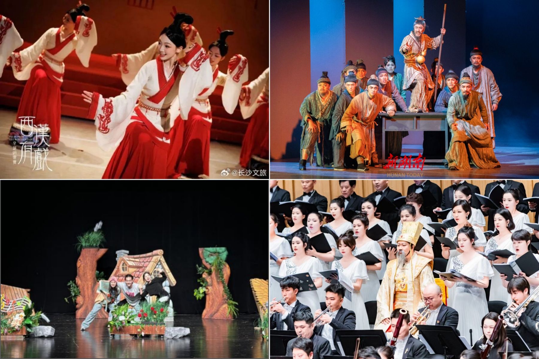 在产教融通方面,力促“以创促学、以创促业”,在实现“课堂项目化、作业作品化、作品产品化”上,开辟了一条新路径。先后与湖南省演艺集团、湖南省歌舞剧院、梅溪湖国际文化艺术中心等头部企业达成合作,签订了“戏剧人才培养”“红色儿童音乐剧”“红色舞剧”等市场化开发项目,累计技术开发、服务经费逾300万。其中,我院舞蹈专业学生主演的《最忆韶山冲》沉浸式红色情景剧,音乐、舞蹈专业学生组织策划的《山海经·魈》《山海经·涿鹿之战》儿童戏剧,成为现象级文旅IP;参演的多媒体跨界融合音乐话剧《西汉有戏》已于2025年5月17日-18日公演,反响热烈、影响深远。“以创促创”作为学院推动专业发展与社会服务同行,创新育人与文化活化同向的重要探索,较好地实现了“能力培养”与“价值引领”的同频共振,架构起了一体化协同育人的新格局。