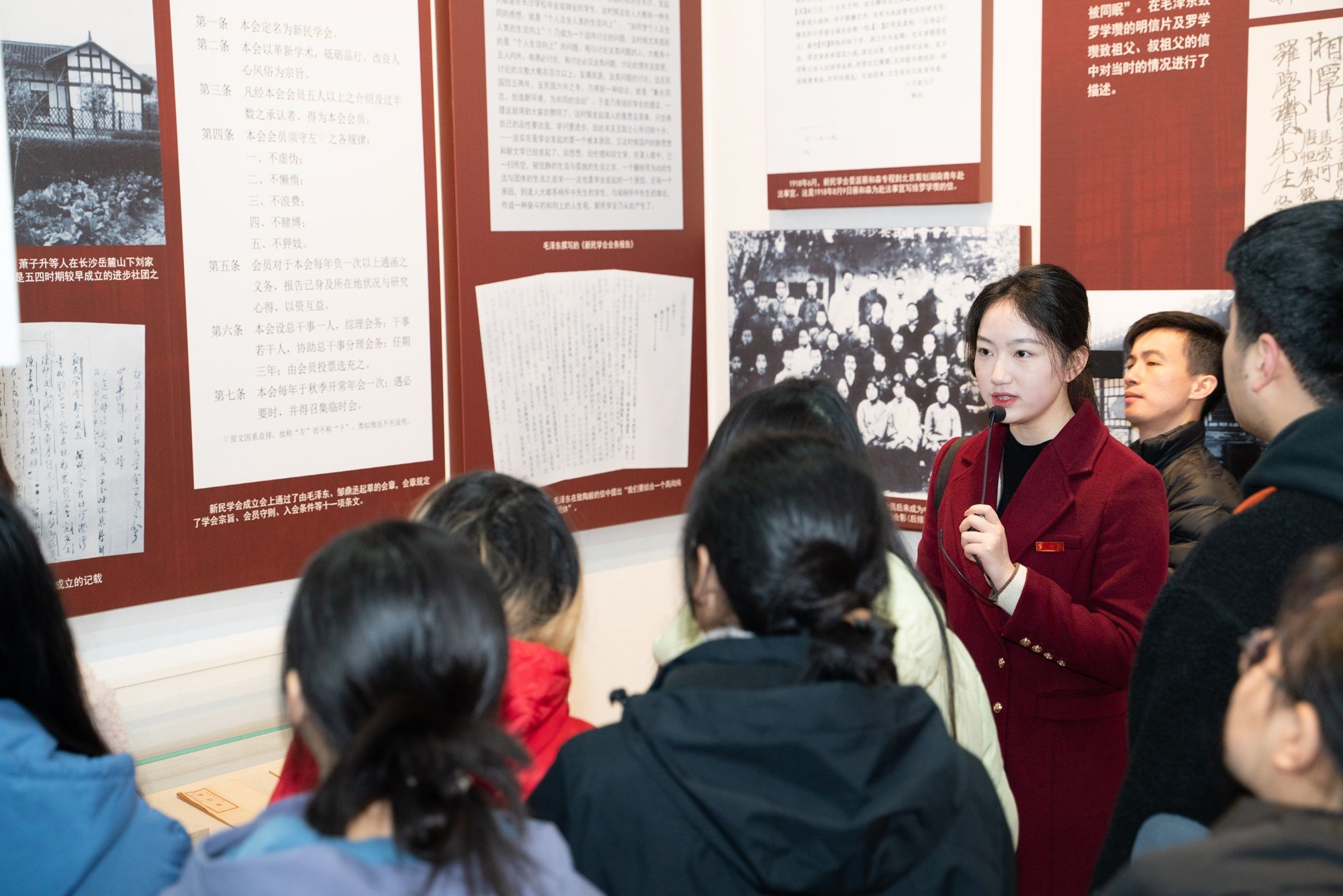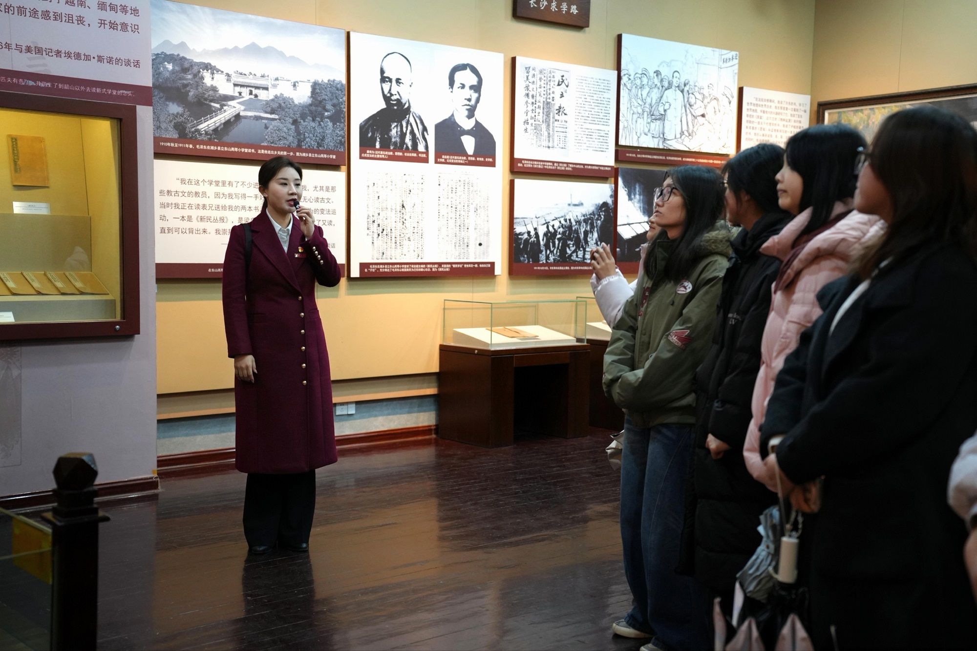 启动仪式结束后,“毛泽东与第一师范”纪念馆教师团队以学校杰出校友的革命事迹为主线,献上了《立报国志,做栋梁材》《敢教日月换新天》《革命理想高于天》等沉浸式馆内大思政课。通过深情讲述毛泽东、杨开慧、蔡和森等革命先辈的感人故事,生动展现了先辈们追求真理、确立马克思主义信仰的成长之路与信仰之路,实现了红色教育与课程教学的深度融合。