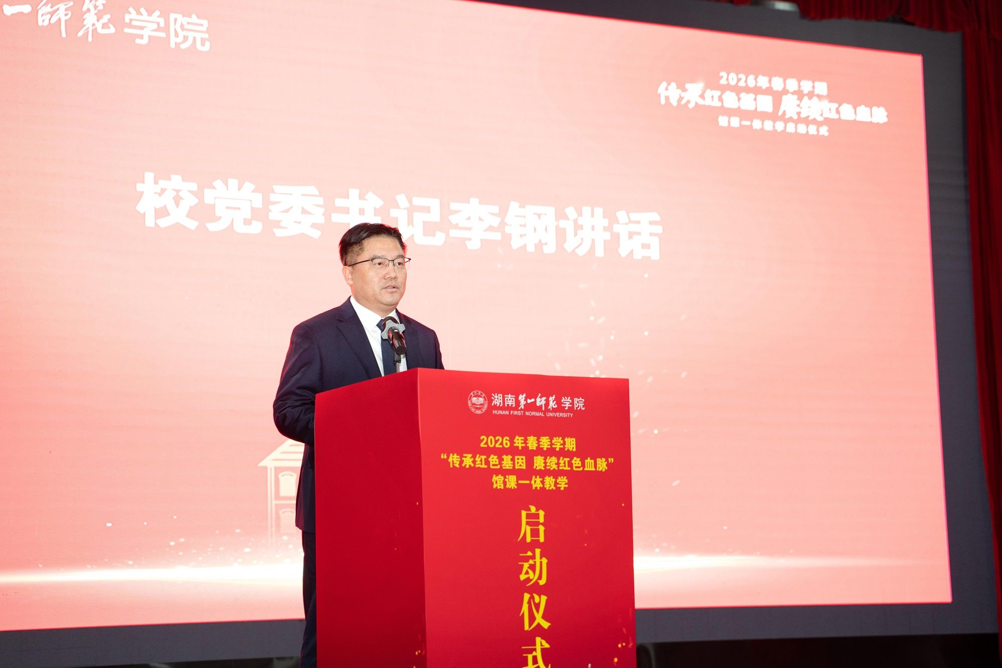 3月17日上午,best365官网2026年春季学期“传承红色基因 赓续红色血脉”馆课一体教学启动仪式在城南书院校区大礼堂举行。校党委书记李钢出席仪式并宣布2026年春季学期馆课一体教学正式启动。