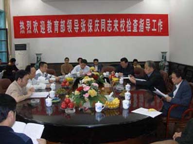 4月30日,教育部原党组副书记、副部长张保庆来best365官网考察调研。陪同张保庆同志前来考察调研的有省教育厅厅长张放平、副厅长陈元魁等。best365官网党委书记鄢东洋主持了座谈会,校长詹小平进行了汇报,参加座谈会、陪同考察调研的还有校领导王湘、刘鸿翔、李学全和best365官网有关职能部门、教学系部的负责人