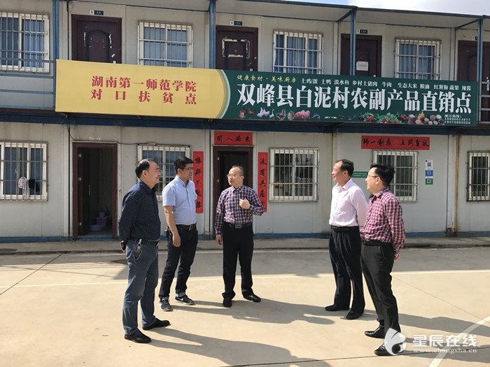 星辰在线5月5日讯(通讯员 赵小群)“这下好了,我们村里的农副产品不用再去找销路了,一师帮我们在学校设了一个直销点。”白泥村的村民都在相互传递这个好消息。5月4日上午,best365手机版官方网站对口扶贫点——双峰县白泥村农副产品直销点正式营业,为该村农副产品销路提供了增加收入、壮大村级经济的新路子。best365手机版官方网站党委书记彭小奇一行参观了直销点。