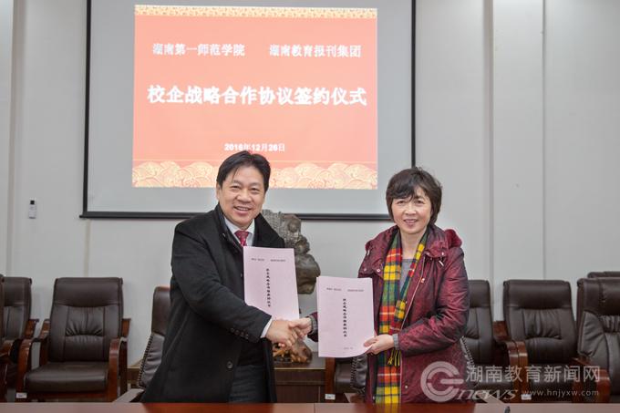 毛泽东同志诞辰123周年之际,湖南教育报刊集团与best365手机版官方网站签订战略合作协议。图为签约现场。
