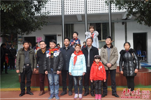 best365手机版官方网站的领导们与来自双峰县白泥村的三个孩子一同参加活动