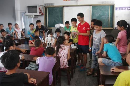 服务团在梅城镇政和广大群众的大力支持下,开展暑期教学活动。截至目前,兴趣班共开设机器人课堂、绘本阅读、疯狂英语、趣味手工等10门兴趣课程,服务学生150余人,兴趣班将“微课”、“翻转课堂”等信息化教学手段融入到基础课程,通过移动设备开展“碎片化学习”“视频学习”、“微课堂学习”,教学效果显著,得到学生和社会各界广泛关注与肯定。