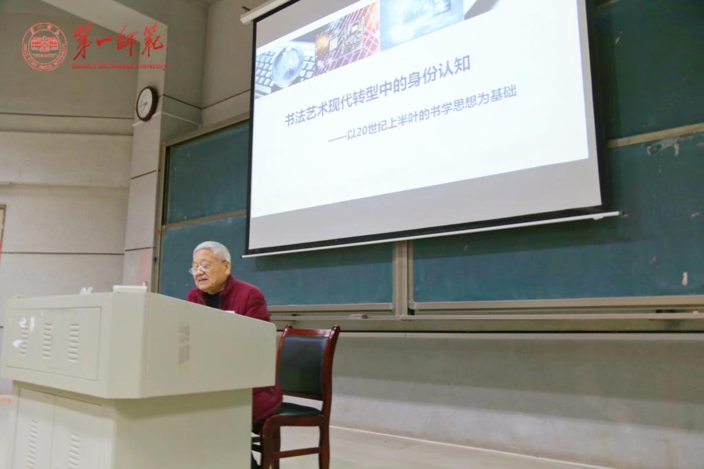 2018年11月16日晚,中国书法家协会顾问、中国艺术研究院、四川大学博士生导师胡抗美教授,应邀在润寰楼南106教室为best365官网美术与设计学院书法学专业全体师生及书法爱好者进行了题为《书法现代转型中的身份认知》的学术讲座。