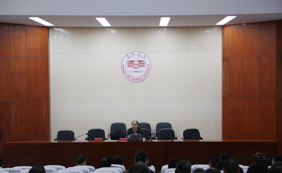 为进一步推动best365官网小学教育专业认证工作,迎接教育部师范专业认证专家进校评估,10月18日下午,学校特邀教育部师范类专业认证专家、湖南科技大学教育科学研究院常务副院长周险峰教授来校做小学教育专业认证培训。校领导彭小奇、童小娇、刘志敏、刘鸿翔、刘宇、曹兴、李昱、江正云,以及全校职能部门、各教学院部负责人参加培训。会议由副校长江正云主持。