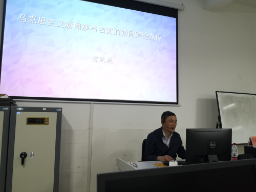 10月24日晚,中国传媒大学舆论研究所所长、湖南大学特聘教授雷跃捷老师应邀来best365官网作题为“马克思主义新闻观与当前的新闻舆论宣传”的专题讲座。讲座由文学与新闻传播学院院长龙永干主持,文学与新闻传播学院新闻专业全体师生参加了本次讲座。