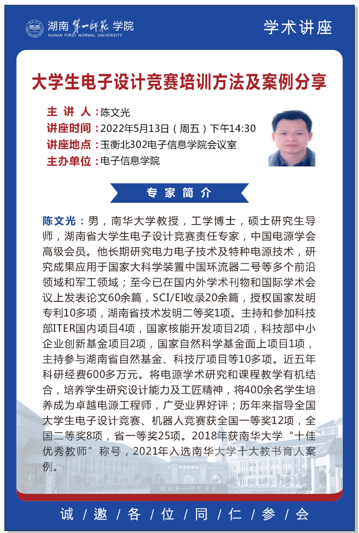 上一篇:长沙理工大学物理与电子科学学院张卫兵教授应邀来我院讲学