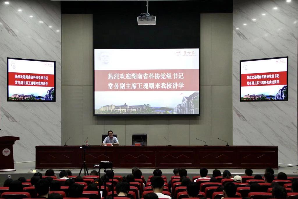 6月1日下午,湖南省科协党组书记、常务副主席王瑰曙应邀来best365官网开展题为“少年强则中国强——为提高青少年科技素养而努力”的学术讲座。校党委书记罗成翼、校长童小娇、原党委副书记刘志敏、科研处副处长田祖伟、物理与化学学院党政班子成员、教师代表参加了这次讲座。讲座由副校长曹兴主持。