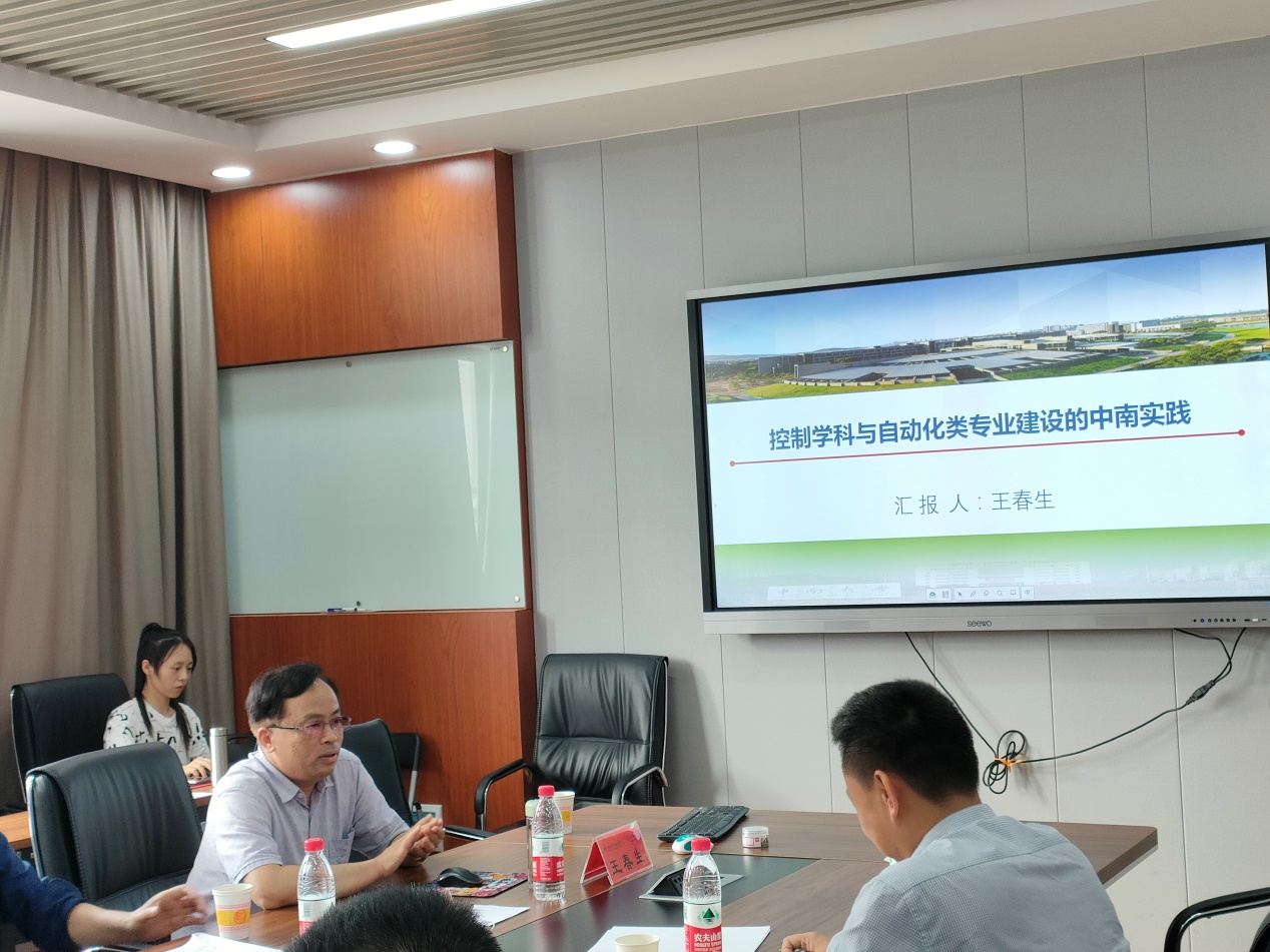 王春生教授从“历史沿革”、“学院简介”、“学科研究方向”、“学科建设目标”等几个方面,向大家介绍了中南大学自动化学院的发展历史、办学规模、人才培养、科学研究、学科专业建设等情况,给我院电子信息类工科专业的建设和发展提供了宝贵的经验。
