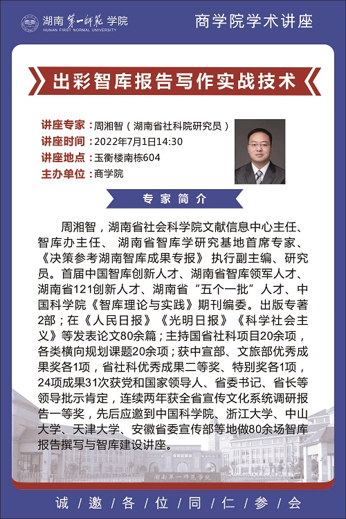 上一篇:湖南省社会科学院智库办主任周湘智研究员来商学院讲座