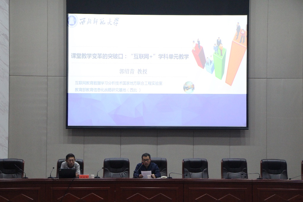 9月22日,西北师范大学智能教育研究院院长、互联网教育数据学习分析技术国家地方联合工程实验室主任、博士生导师郭绍青教授应邀来我院在百熙楼228会议室开展学术讲座。我院全体教师、部分学生代表聆听了讲座,讲座由我院院长满君丰主持。