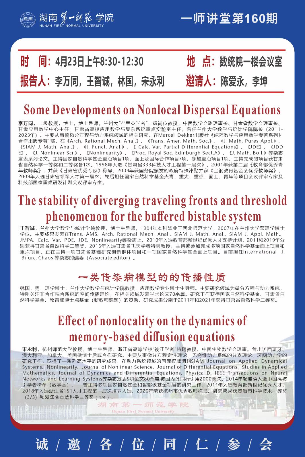下一篇:学术预告|一师讲堂第158期:Predator-Prey系统在退化奇点的万有开折