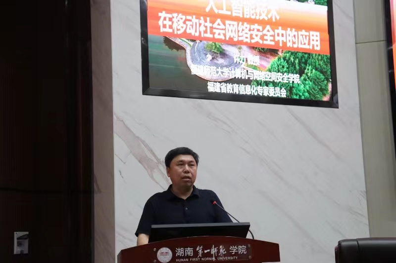 4月28日,“数智赋能教育”学术论坛在百熙楼228开讲,福建师范大学计算机与网络空间安全学院院长许力教授、国防科技大学谢剑斌教授做主题讲座,电子信息学院院长高峰主持论坛,电子信息学院一百余名师生聆听了讲座。