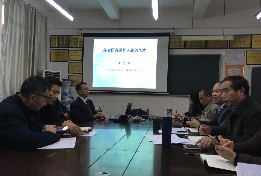 20日下午,黄忠廉教授以“外文研究系列选题的艺术”为题,展开了一场面向教师的讲座。黄教授结合他个人研究选题的经验,传授了可持续选题的方法和艺术。黄忠廉教授还对部分外语教师就课题选题、标书撰写、论文写作等方面的问题进行了一对一指导。