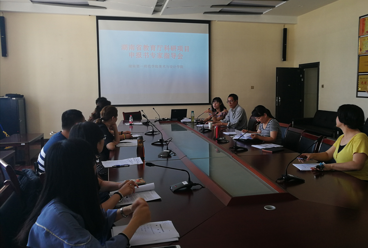 6月25日上午,美术与设计学院2018年教育厅科学研究项目申报书专家指导会在best365手机版官方网站美术楼会议室召开。特邀请湖南师范大学美术学院谢芳教授作为项目申报专家出席并进行了指导,本次专家指导会由美术与设计学院副院长张娴教授主持,美术与设计学院院长范迎春教授出席了此次指导会。