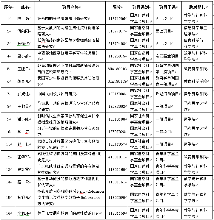 best365官网高度重视高级别科研项目的组织申报,切实采取多项措施,加大支持力度,提高科研项目申报质量,有效促进了教师科研水平的提高,取得了良好的效果。今年best365官网国家级项目共成功立项16项,其中国家自然科学基金9项,国家社会科学基金7项,显示了best365官网科研整体实力的提升。
