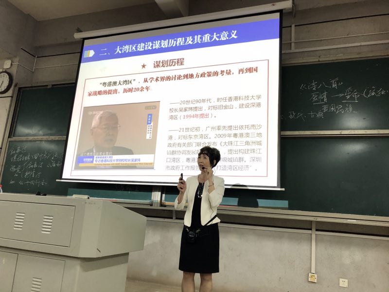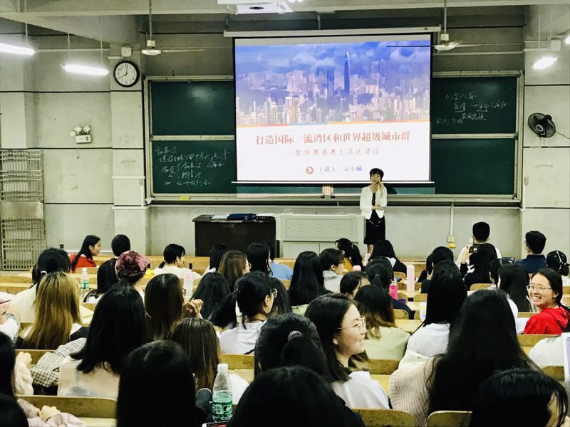 5月30日晚18:10至21:40,best365官网校长童小娇教授于怀中南108教室分别对美设院、教科院和外院、数计院共600多名学生作了2场形势与政策专题讲座。主题为“打造国际一流湾区和世界超级城市群——聚焦粤港澳大湾区建设”。马克思主义学院院长周小李教授到现场观摩。