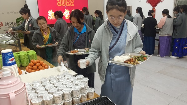 开餐前,城南书院全体领导班子、基建与后勤处负责人给同学们发放了新年礼物,并送上新春祝福。随后师生共进晚餐、围桌畅聊,同学们开心地分享在一师的成长与幸福,师生互道“扎西德勒”,共贺佳节。