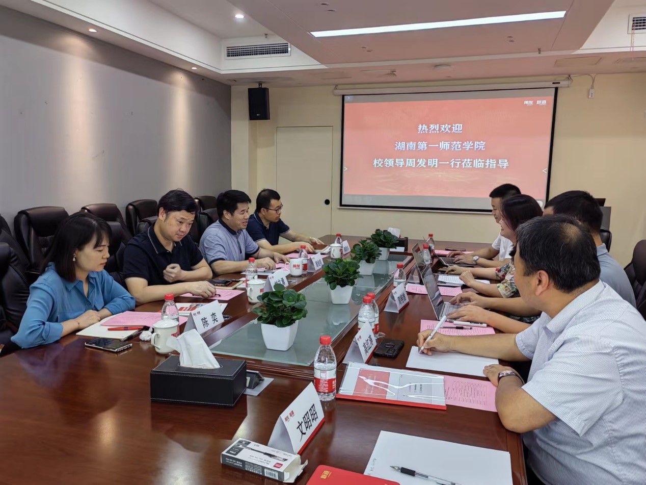 罗姣介绍了用友的业务、服务湖南当地企业数字化转型的情况及企业最新的人才需求现状。她指出,新道科技作为用友集团旗下专门服务院校的平台型教育服务企业,通过技术创新、内涵服务、服务创新等方式为院校构建校企合作、产教融合新范式,共建未来技术学院和现代产业学院。新道科技新工科教育规划顾问高红涛就“工业互联网”赋能学校新工科专业建设给周发明一行做了详细汇报。湖南用友软件公司高级咨询顾问周艳雄就目前企业数字化转型遇到的困境、湖南本地企业数字化发展的现状、企业数字化发展对人才的需求进行了详细介绍。best365官网计算机学院院长满君丰表示,希望在学院现有专业建设、新专业申报、课程建设、师资赋能、学生实习就业、产业学院等方面和公司开展更加深入的合作。