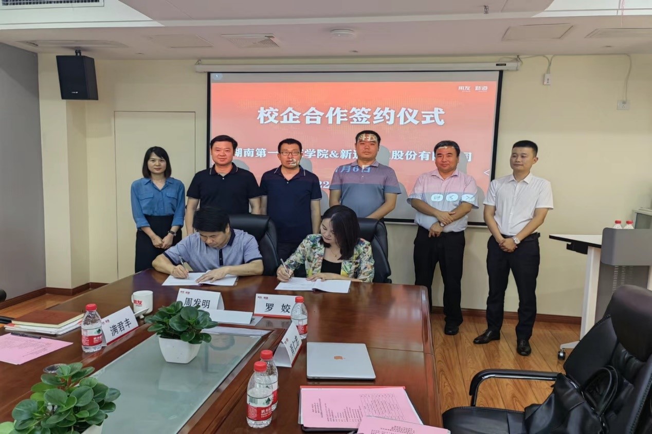 座谈会上,周发明对用友、新道多年来面向高校人才培养和就业工作给予的关心和支持表示感谢。他指出,湖南“三高四新”和“强省会”战略对“新工科”类专业发展提出了新要求,一师希望与用友、新道公司深入合作,培养符合企业急需的数智化商业人才。