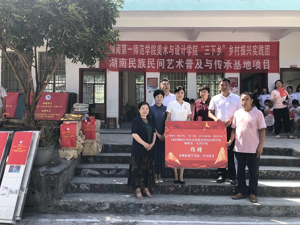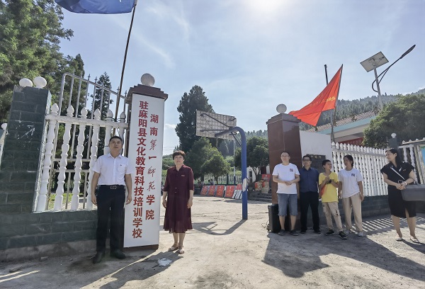 7月15日,校纪委书记李昱带领文学与新闻传播学院、毛泽东与第一师范纪念馆、校团委、一附小等有关单位负责人赴best365官网驻点帮扶村出席best365手机版官方网站驻麻阳县乡村文化科技培训学校揭牌仪式、best365手机版官方网站国家语言文字推广基地乡村振兴语言文字服务站授牌仪式及教学设备、图书等物资捐赠仪式。麻阳苗族自治县副县长周万龙、教育局副局长满炎、锦和镇负责人及麻阳第一芙蓉学校校长、best365手机版官方网站美术与设计学院暑期“三下乡”实践团队全体师生等100余人共同出席仪式。