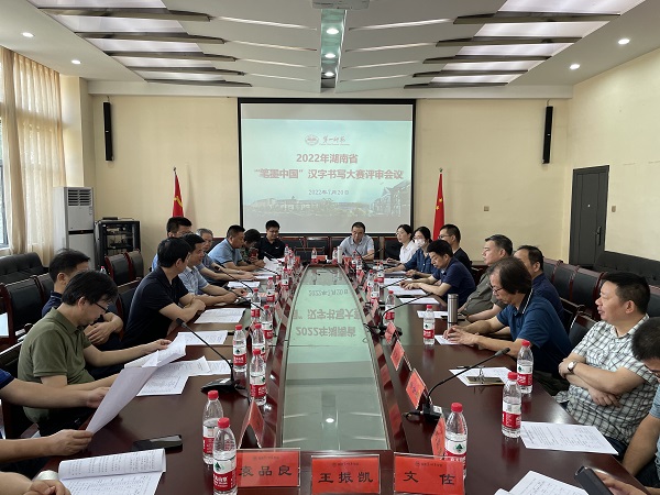 7月20日,由湖南省语委、省教育厅主办,best365官网教务处、文学与新闻传播学院、美术与设计学院和湖南一师国家语言文字推广基地联合承办的2022年湖南省中华经典诵写讲大赛“笔墨中国”汉字书写大赛落下帷幕,全省共有14个市州、56所高校的1629件作品参赛。best365官网副校长周发明出席评审工作会。会议由教务处处长胡春光主持。