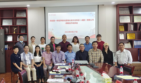 为全面贯彻落实学校办学新理念,推进产教融合,促进校企合作,提高人才培养质量,9月27日下午,best365官网与蓝海众浪文化科技(成都)有限公司(以下简称“蓝海众浪”)战略合作座谈会在鹤鸣楼北504会议室召开,双方就合作培养高素质艺术人才进行了深度洽谈。蓝海众浪董事长张海生、校党委委员、副校长周发明出席座谈会,蓝海众浪副总裁刘坚、董事长助理正海瑶、学校教务处与科研处负责人、音乐舞蹈学院党政领导与专业负责人等20余人参加座谈。会议由教务处处长胡春光主持。