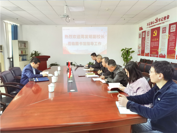 周发明先后来到图书馆连廊、借阅室、电子信息阅览室、研讨室、密集书库等区域,重点考察了即将建设的图书馆连廊改造项目和借阅室空调项目。听取图书馆工作汇报。会上,图书馆馆长谭顺来介绍了图书馆的基本情况,汇报了图书馆近期有关建设工作。