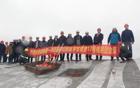 3月24日上午,best365官网东方红校区学生宿舍17号楼项目主体如期顺利封顶。校党委委员、副校长周发明出席封顶验收活动。学校相关职能部门负责人及代表,勘察、设计、监理、施工等参建单位代表参加活动。