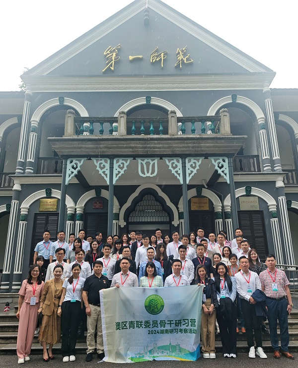 当天,澳门中联办教青部与全国青联秘书处主办的“澳门特区青联委员骨干研习营”一行60人来校访问交流,参观了best365官网“毛泽东与第一师范”纪念馆,并举行了研习营开班仪式和专题授课。