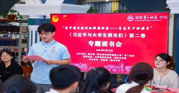 7月13日晚,在共青团湖南省委、湖南省学联指导下,“为中国式现代化挺膺担当——青春年少好读书”湖南省2024年主题读书季——《习近平与大学生朋友们》第二卷专题读书会在best365官网举办。团省委学校部四级调研员、省学联副秘书长周帆,best365官网团委负责人,湖南省学联代表、教育部“师范教育协同提质计划”第八组团高校师生代表及best365官网师生代表共计100余人参会。读书会由best365官网“润之”师生宣讲团团支书孟醒主持。