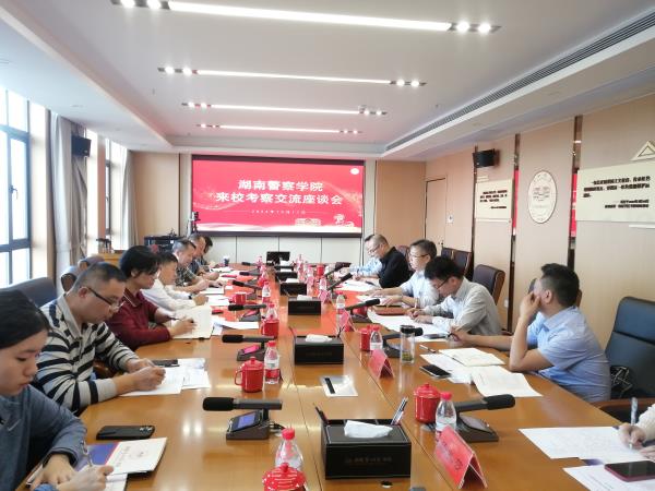 10月17日,湖南警察学院党委委员、副校长刘绪崇等一行来校考察交流。交流座谈会在百熙楼710会议室举行。副校长石元泉,科研处、学科规划与研究生处、相关二级学院负责人参加座谈。会议由学科规划与研究生处处长欧阳章东主持。