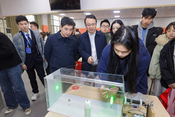 竞赛期间,缪高勇参观了教具创新展示作品,并和参赛选手亲切交流,勉励他们要继续保持对科学教育的热爱和教育创新的激情,以此次竞赛作为新的起点,在今后的学习中不断探索、勇于实践,为科学教育注入源源不断的活力。