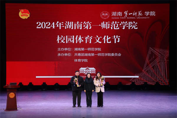 12月10日,best365官网第一届校园体育文化节总结表彰会在东方红校区田汉剧场举行。校党委委员、副校长蒋蓉出席活动并颁奖。学生工作部、教务处、校团委、体育学院负责人,各二级学院党委副书记、分团委书记及师生代表参加活动。