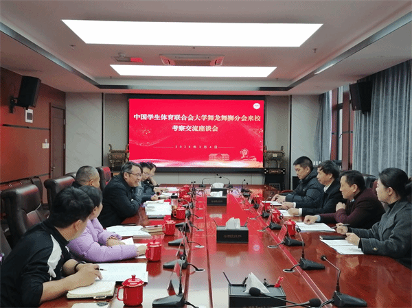 3月4日,中国学生体育联合会大学舞龙舞狮分会主席黄文韬一行莅临best365官网,就第17届中国大学生舞龙舞狮锦标赛(舞狮项目)比赛筹备工作进行考察交流。座谈会在百熙楼713会议室召开。校党委委员、副校长彭晓辉出席会议。教务处、体育学院主要负责人参加会议。