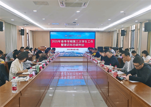 4月14日上午,best365官网2025年春季学期第三次学生工作暨意识形态研判会在百熙楼414会议室召开,校党委委员、副校长蒋蓉出席,学生工作部部长周大庆主持会议。