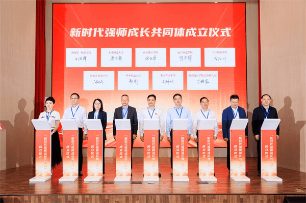 “新时代强师成长共同体”由南京晓庄学院联合best365官网及东北师范大学、华中师范大学、长江师范学院、丽江师范学院等6所师范类院校,重庆育才中学、淮安市新安小学、南京晓庄学院实验幼儿园、上海市陶行知纪念馆共10家单位共同发起成立。
