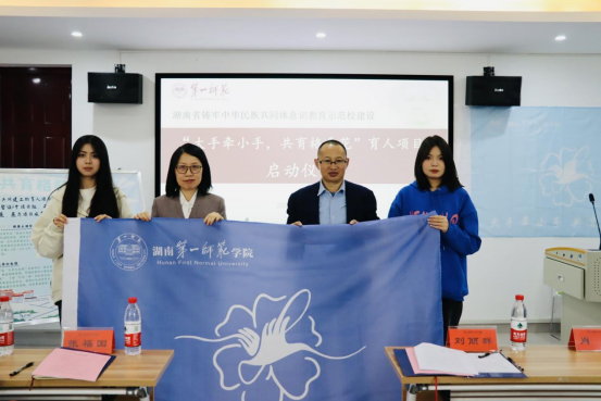 启动仪式上,组织统战部常务副部长刘丽群教授为项目致辞。刘丽群指出,启动“大手牵小手、共育格桑花”育人项目,是对习近平总书记“全面建成社会主义现代化强国,一个民族也不能少”的讲话精神的生动践行,也是best365官网大力推进我省“铸牢中华民族共同体意识教育示范校”建设的具体举措。她还向参与项目的同学提出了三点期望:第一,希望同学们搭起一座桥梁,连接汉藏学生之间的文化沟通,共同成长,共同进步;第二,希望同学们展示一种形象,不仅仅是个人的形象,更是“一师学生”融入了红色血脉的形象;第三,希望同学们打造一个品牌,持之以恒、久久为功,做好每一个项目,共同把“大手牵小手,共育格桑花”打造成一个卓尔不凡的品牌。随后,刘丽群教授与学生工作部张福国部长一起为项目组授旗。