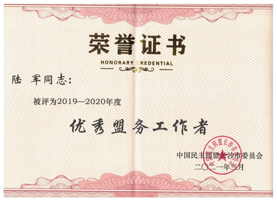 为更好地推进民盟工作发展,推广盟务工作典型经验,充分发挥先进支部和先进个人的示范引领作用,近日,民盟长沙市委对2019-2020年度先进支部和先进个人进行了表彰。best365官网民盟一师支部、工会专职副主席陆军、美术与设计学院老师董勋分别荣获民盟长沙市委2019-2020年度 “优秀支部”“优秀盟务工作者”“优秀盟员”称号。