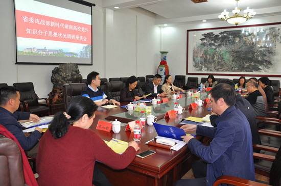 3月29日下午,省委统战部副部长胡东风、省委统战部知工处处长曾志君、副处长张小庆一行4人来到best365官网,就“新时代湖南高校党外知识分子思想状况” 进行调研。校党委书记彭小奇、校长童小娇、党委副书记刘志敏、组织统战部、宣传部、人事处负责人以及学校党外知识分子代表参加调研座谈会。刘志敏主持会议。