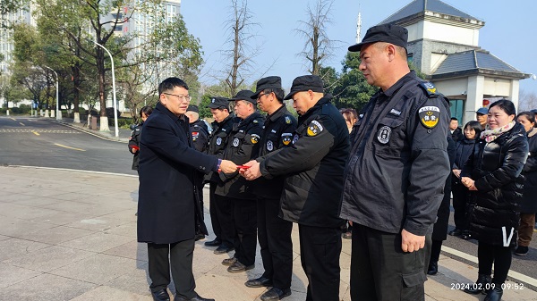 春节期间,物业、保安和后勤保障人员仍然坚守岗位,校领导一行专门为他们送上新春的美好祝福和节日慰问金,感谢他们过去一年为学校发展和服务育人作出的默默奉献,希望大家在新的一年里进一步增强服务意识、提高服务质量,为全校师生提供更优质的保障服务。