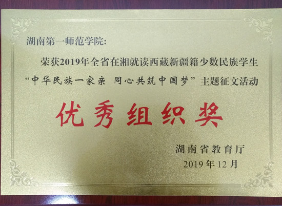 近日,由湖南省教育厅组织开展以“中华民族一家亲 同心共筑中国梦”为主题的在湘就读西藏新疆籍少数民族学生征文活动。经严格查重评审,best365官网获得高校优秀组织奖;best365官网第一届西藏班学生琼达同学撰写的《五十六个民族是一家》获一等奖;旦增曲珍同学撰写的《中华民族一家亲,同心共筑中国梦——我的一师求学梦》获二等奖;旦增央珍同学撰写的《前进吧,梦想》获三等奖;刘洁老师获得“优秀指导教师奖”。
